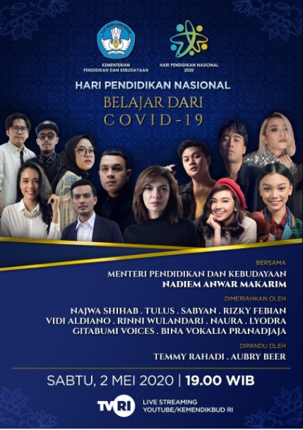 Jakarta, Kemendikbud — Jelang Hari Pendidikan Nasional (Hardiknas), Kementerian Pendidikan dan Kebudayaan (Kemendikbud) mengeluarkan Pedoman Penyelenggaraan Hari Pendidikan Nasional Tahun 2020. Dalam pedoman tersebut, Kemendikbud mengumumkan tema Hardiknas 2020, yaitu “Belajar dari Covid-19”, serta memublikasikan logo resmi Hardiknas 2020. Dalam pedoman tersebut, Kemendikbud mengimbau setiap satuan pendidikan pada semua jenjang pendidikan, kantor instansi pusat dan daerah, serta perwakilan Republik Indonesia di luar negeri tidak mengadakan kegiatan/aktivitas peringatan Hardiknas 2020 yang mengakibatkan berkumpulnya orang banyak pada suatu lokasi.